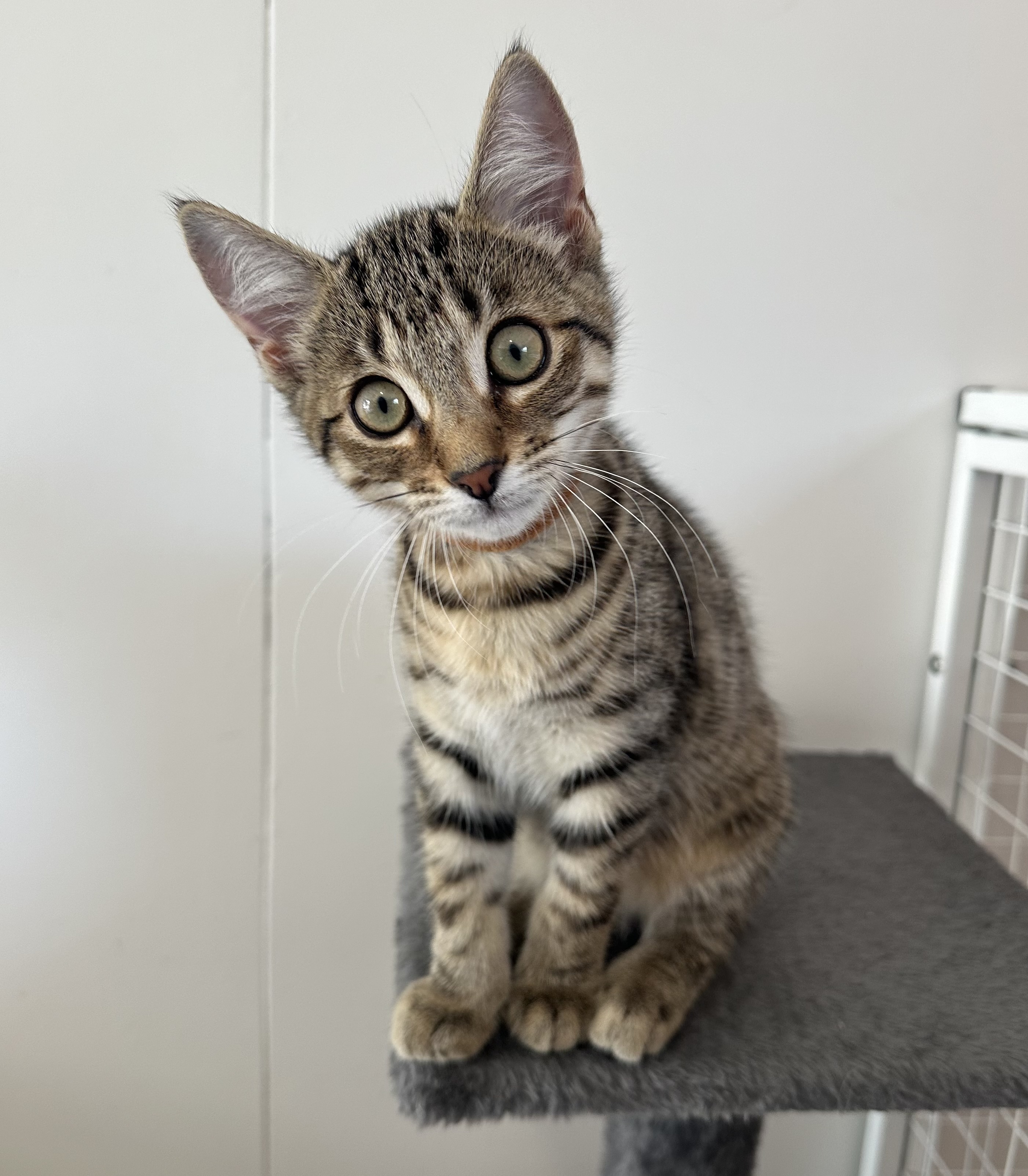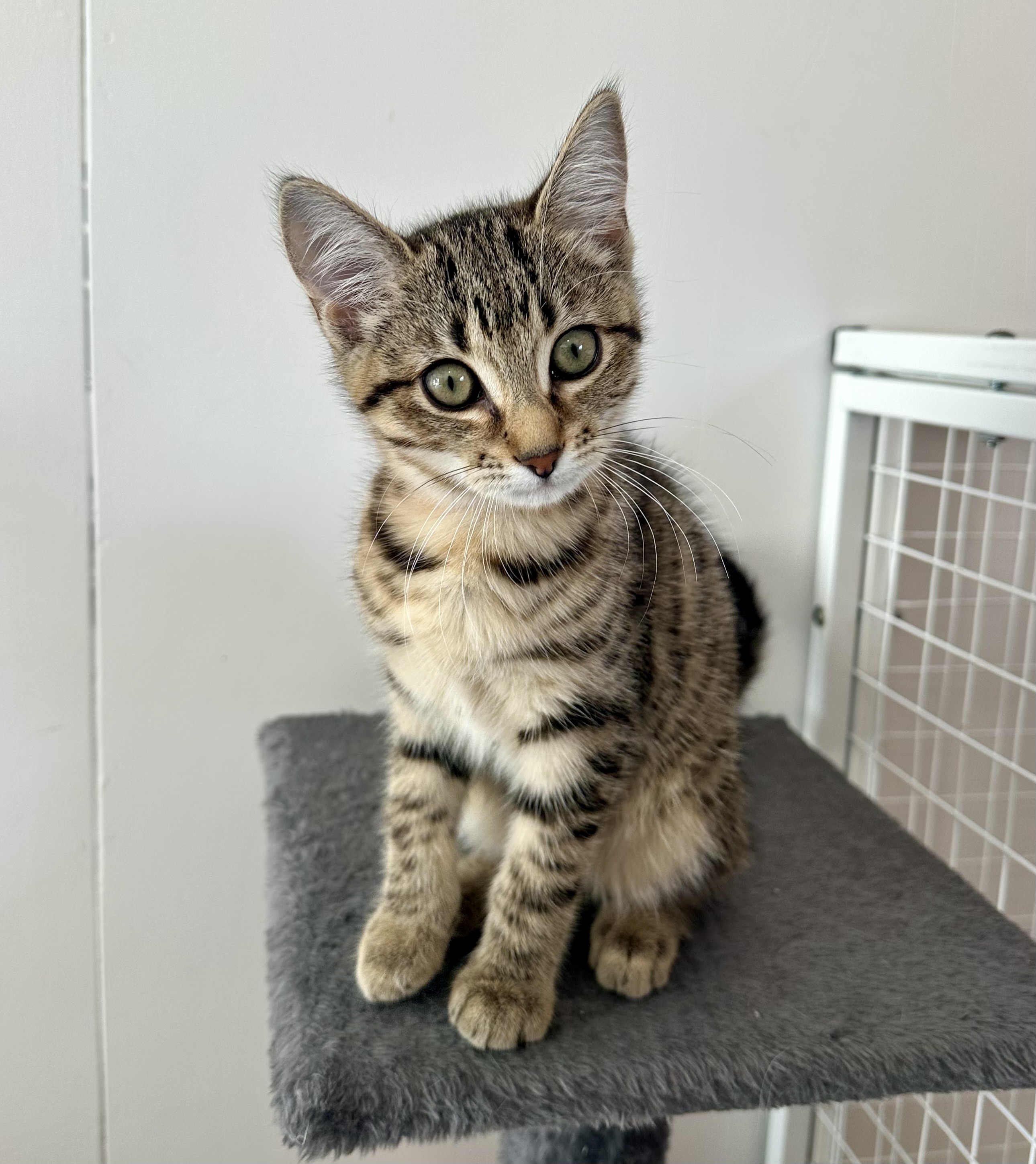 Potato is a female, 10 week old, tabby domestic short hair.